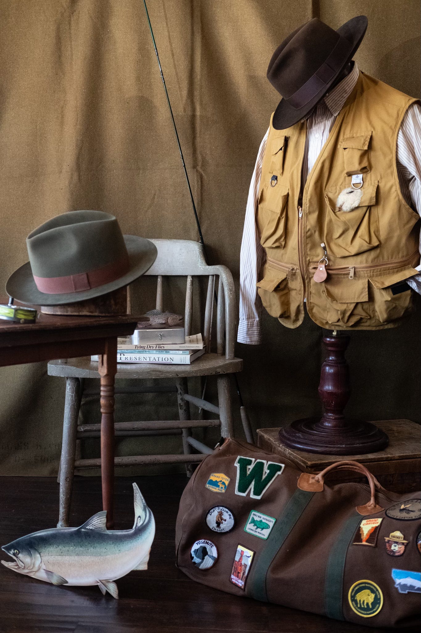 My favorite hat, the one I wear most often and am intensely attached to, is the Wellema hat in moss green felt with a brown band. Cody Wellema makes hats in California and I’ve always loved his work. When I first got this hat I adored it and didn’t want to get it wet. “Don’t worry!” Cody assured me. “It can handle the elements, it will give it more personality.” Well it was easy for him to say, I feared the first crease or bend. No longer. Now I’ve worn this hat fishing in Montana, at Pitti, in New York, in most places you’ve ever run into me.