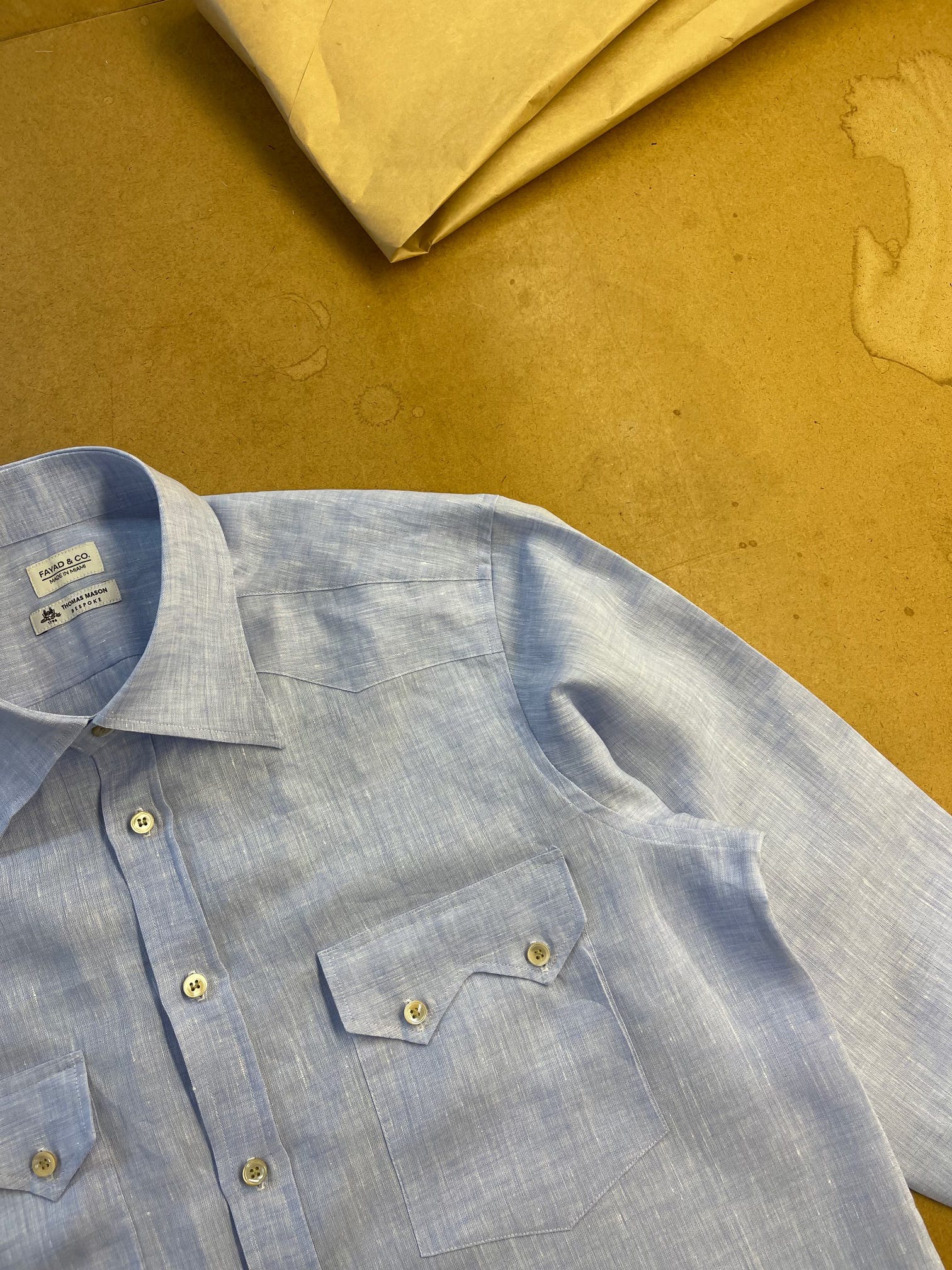 And finally the Sawtooth Linen Shirt. A Western shirt that’s perfect under a summer suit or to the beach or anywhere you’re allowed to drink a beer in public.